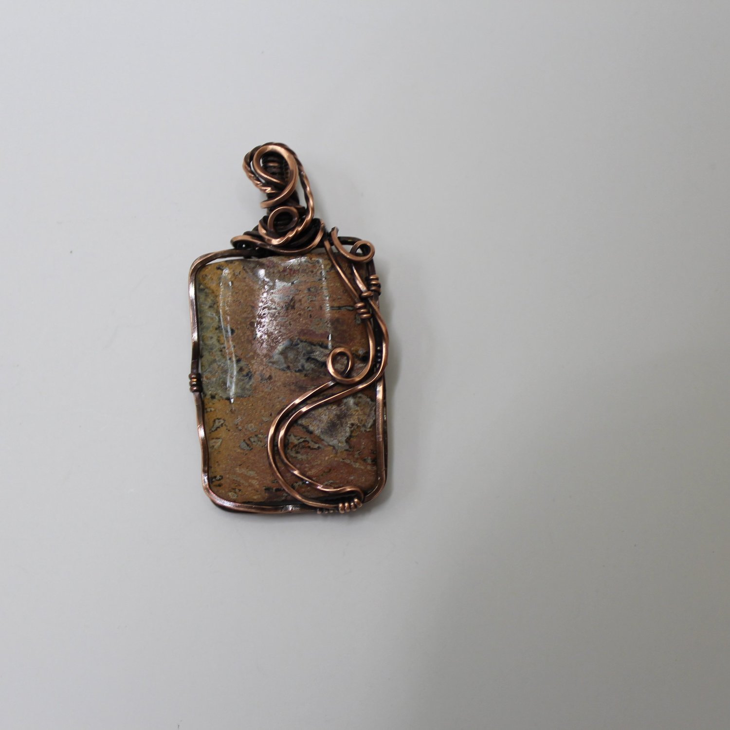 Rectangular shaped Picture Jasper bead wrapped in square copper wire. Double Sided.